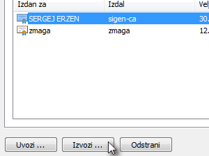 ![]() V seznamu izberite certifikat, ki ga želite izvoziti. |