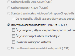 ![]() Za format izvozne datoteke lahko pustite privzeto možnost Izmenjava osebnih podatkov - PKCS #12. (.PFX). |