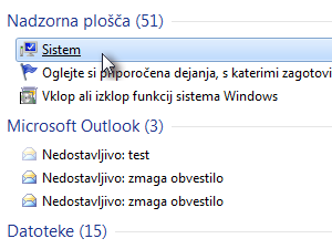 ![]() Za spremembo spremenljivke PATH kliknite gumb Start in vpišite Sistem. |