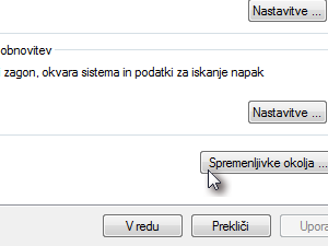 ![]() Spodaj v oknu kliknite Spremenljivke okolja. |