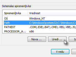 ![]() Med Sistemskimi spremenljivkami poiščite spremenljivko Path. |
