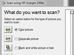 Če skenirate dokumente, lahko izberete tudi možnost Grayscale picture, kar pomeni, da bo slika skenirana brez barvne informacije, kar nekoliko pohitri skeniranje. |