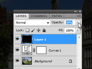 ![]() Novemu layerju določite Opacity na 40% (glej sliko). |