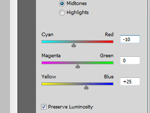 ![]() Sedaj pa bomo dodali oddtenke modre barve. Kliknite zgoraj na Layer, New Adjustment Layer in izberite Color Balance... Ko se pojavi pogovorno okno, pustite privzeto ime in kliknite na gumb OK. Nato pa nastavite podobne vrednosti kot jaz. |