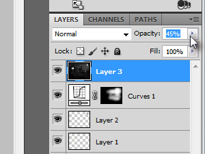 ![]() Layerju zmanjšajte Opacity na okoli 45% (glej sliko). |