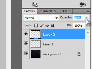 ![]() Najprej bomo Luninemu layerju zmanjšali Opacity na okoli 60% (glej sliko). |