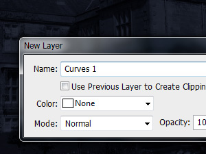 ![]() Kliknite nato zgoraj na Layer, New Adjustment Layer in izberite Curves... Ko se pojavi pogovorno okno za imenovanje nastavitvenega layerja, kliknite na gumb OK. |
