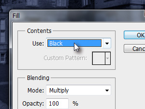 ![]() Kliknite zgoraj na Edit in izberite Fill... V novem oknu Use določite Black in kliknite na gumb OK. |