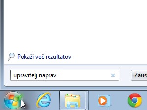Kliknite gumb Start in v iskalno polje vpišite upravitelj naprav.