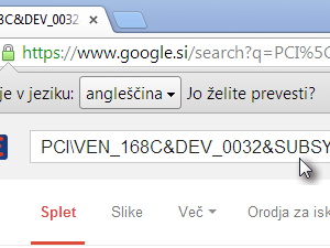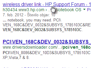 ![]() Med najdenimi rezultati boste običajno hitro videli, za katero napravo gre, z malo sreče pa boste med rezultati našli tudi povezavo do gonilnikov za iskano napravo.