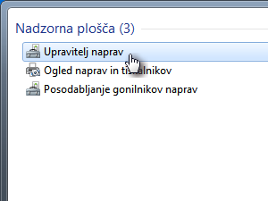 ![]() Med najdenimi programi sedaj zaženite Upravitelj naprav.
