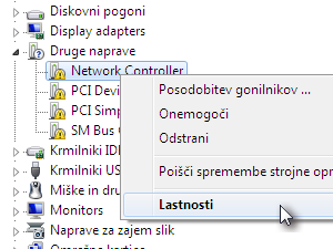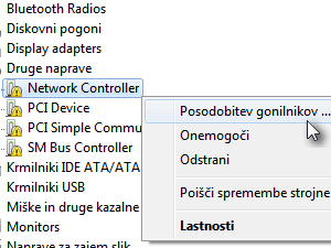 ![]() Najlažji način posodobitve je, da z desdnim miškinim gumbom kliknete na napravo in izberete možnost Posodobitev gonilnikov ... |