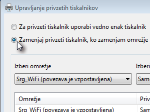 ![]() Izberite možnost Zamenjaj privzeti tiskalnik, ko zamenjam omrežje. |