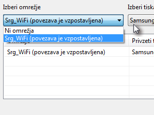 ![]() Spodaj najprej izberite omrežje ter nato v padajočem meniju na desni izberite privzeti tiskalnik, ki bo na voljo v tem omrežju. |