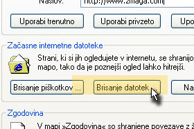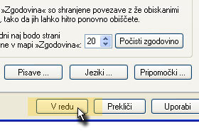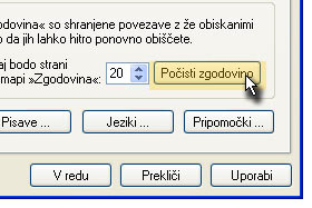 Malo nižje izberimo še gumb Počisti zgodovino. Ko nas program vpraša, če smo prepričani, potrdimo z Da.