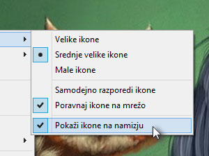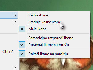 ![]() Kliknite z desnim miškinim gumbom na namizje, izberite Pogled ... |