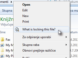 ![]() Z desnimi miškinim gumbom kliknite na datoteko in izberite What is locking this file.