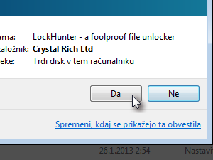 ![]() Potrdite z Da, da dovolite programu spreminjanje računalnika. |
