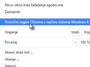 ![]() In izberite Vnovični zagon Chroma v načinu Windows 8. |