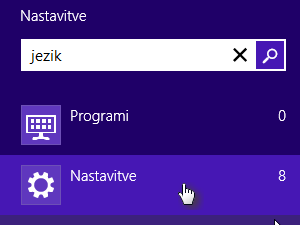V iskalno polje vpišite jezik in izberite kategorijo Nastavitve.