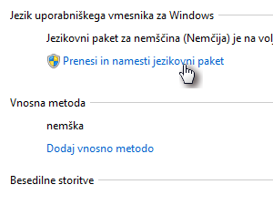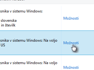 ![]() Zraven novo dodanega jezika kliknite povezavo Možnosti. |