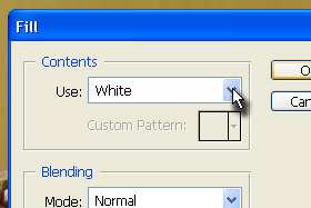 Odpre se novo okno za polnjenje layerja.. V polju use preko izbirnika določite White in kliknite na gumb OK. |