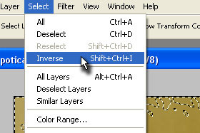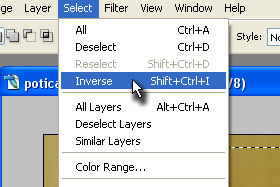 Potem pa spet kliknite zgoraj na Select in izberite Inverse. |