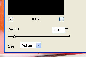 Odpre se novo okno. Amount nastavite okoli -800% in Size določite preko izbirnika na Medium. Kliknite na gumb OK. |