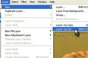 Kliknite zgoraj na Layer, New in izberite Layer via Cut.