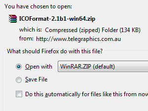 ![]() Kot izhodni format boste sedaj lahko izbrali ICO (Windows Icon) *.ICO in tako sliko shranili kot ikono.