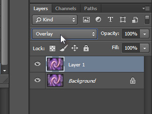 ![]() Kliknite zgoraj na Layer in izberite Flatten Image. Pritisnite Ctrl (Command na MacOS) in J, da duplicirate layer. Layerju nastavite senčenje na Overlay. |