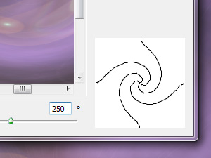 ![]() Kliknite zgoraj na Filter, Distort in izberite Twirl... V novem oknu nastavite iste vrednosti kot jaz in kliknite na gumb OK. |
