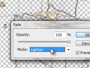 ![]() Pritisnite tipki Ctrl (Command na MacOS) in F skupaj, da ponovite zadnji filter. Potem pa kliknite na Edit in izberite Fade Smart Filter... V novem oknu Mode nastavite na Lighten in kliknite na gumb OK.