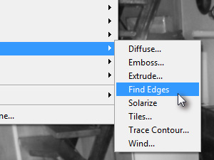 ![]() Kliknite zgoraj na Filter, Stylize in izberite Find Edges. |