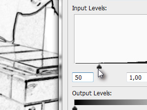 ![]() Pritisnite tipki Ctrl (Command na MacOS) in L skupaj, da odprete okno Levels. V novem oknu črni drsnik (shadows) povlecite malo v desno in kliknite na gumb OK. |
