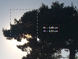 ![]() Naredite selekcijo na poljubnem delu. Opazili boste, da se vam poleg selekcije prikaže širina in višina v centimetrih. |