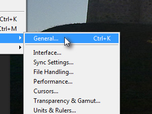 ![]() Sedaj bomo nastavili, da se nam prikazujejo slikovne pike. Kliknite zgoraj na File, Preferences in izberite General... Lahko pa bi izbrali tudi Units & Rulers in tako preskočite naslednji korak. |