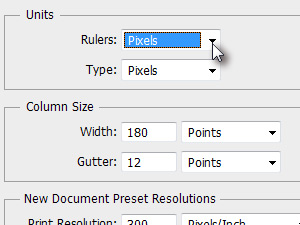 ![]() Potem pa v polju Units nastavite Rulers in Type na Pixels. Kliknite na gumb OK. |