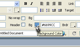 Kliknite na kvadratek Bg color, ki predstavlja določanje ozadja tabele (glej sliko)...