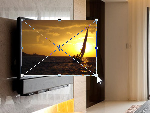 ![]() ... ter nato držite tipko Ctrl (Command na MacOS) in povlecite vsak rob slike v vsak kot TV sprejemnika. Če je vaša slika pokončna, postavite sliko tako, da bo pokrivala TV sprejemnik, saj bomo v naslednjih korakih vse okoli s pomočjo maske odrezali. Potrdite spremembe s tipko Enter. |
