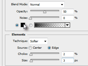 ![]() Kliknite zgoraj na Layer, Layer Style in izberite Inner Glow... V novem oknu nastavite podobne vrednosti kot jaz in črno barvo ter kliknite na gumb OK. |