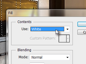 ![]() Selekcija se je naložila. Sedaj jo bomo zapolnili z belo barvo. Kliknite zgoraj na Edit in izberite Fill... V novem oknu Use nastavite na White in kliknite na gumb OK. |