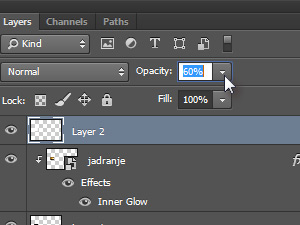 ![]() Nastavite novemu layerju Opacity na okoli 60% (glej sliko). |