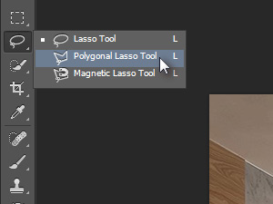 ![]() Izberite orodje Polygonal Lasso Tool. Držite z miško na orodju Lasso Tool (bližnjica je tipka L) toliko časa, dokler se vam na prikažejo ostala orodja. |
