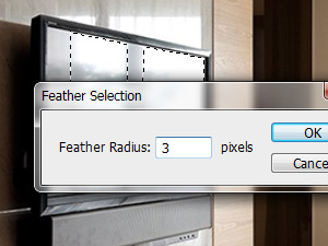 ![]() Potem kliknite zgoraj na Select, Modify in izberite Feather... V novem oknu nastavite Feather Radius okoli 3 pixels in kliknite na gumb OK. |