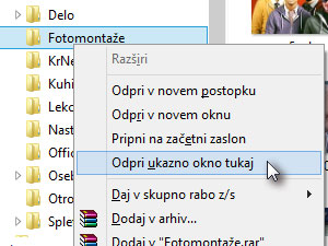 ![]() Držite tipko Shift in kliknite z desnim miškinim gumbom na izbrano mapo ter izberite Odpri ukazno okno tukaj. |