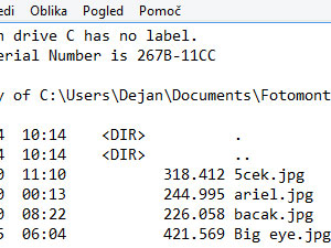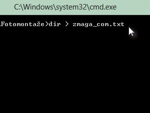 ![]() Odpre se ukazno okno (cmd), kjer napišite dir > zmaga.com.txt in pritisnite Enter. Seveda lahko namesto zmaga_com napišete nekaj drugega, če želite :) |