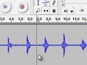 ![]() Za nadaljevanje del skladbe ne sme biti več označen, zato kliknite kjerkoli na zvočni datoteki, da odpravite selekcijo. |