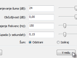 ![]() V oknu potrdite odstranjevanje šuma s klikom na gumb V redu. |