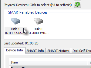 ![]() Po zagonu programa najprej zgoraj izberite, za kateri disk želite preveriti parametre. |